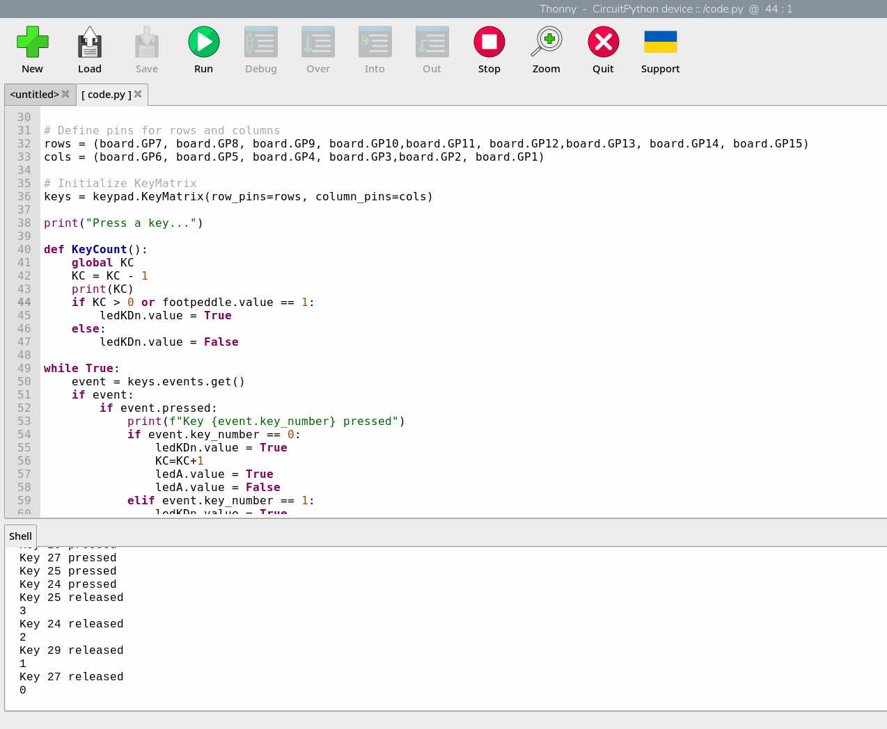 I checked each key to ensure the correct code appeared. All good so far..