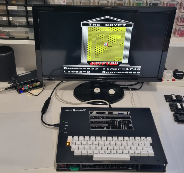 I updated the case for my version 3 Electron Ultra so this is my setup now. Left to right - the v3 Electron Ultra with the PiTubeDirect Cartridge, the BBC B+ and v4 Electron Ultra with the built in PiTubeDirect, all networked.